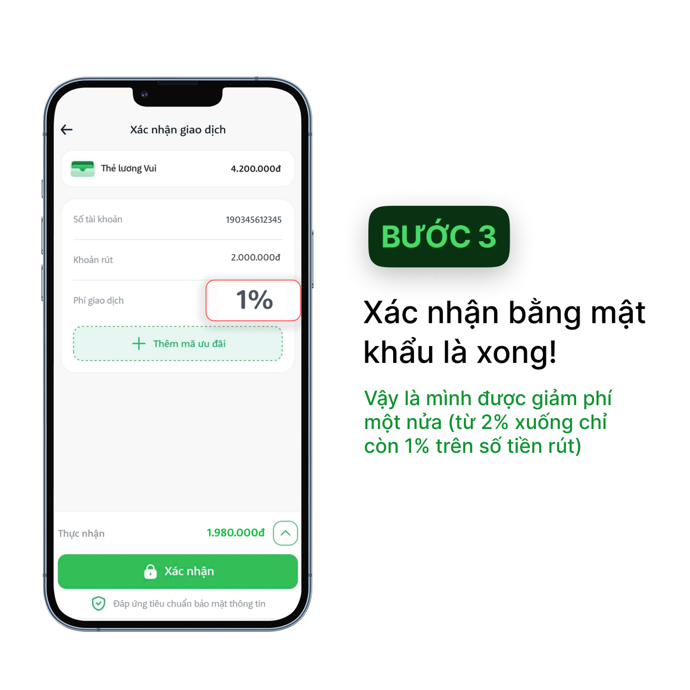 Sau khi mình điền đơn xong và nhận được thông báo xác nhận từ Vui App, Anh/Chị có thể vào tài khoản của mình, thực hiện rút lương - MỌI GIAO DỊCH SẼ ĐƯỢC TỰ ĐỘNG GIẢM PHÍ 50%.