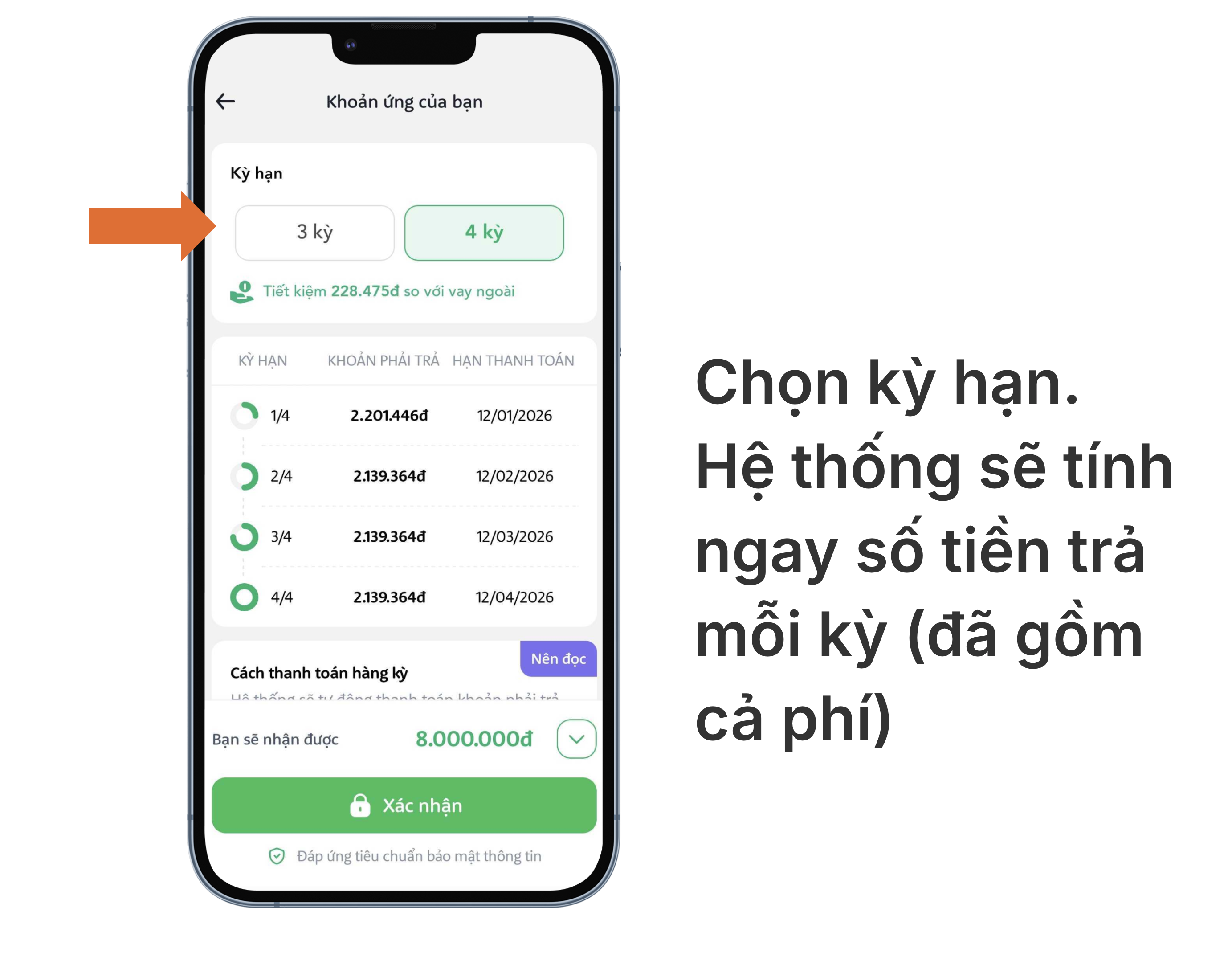 Mức phí cao nhất vào đầu kỳ ứng và sẽ giảm dần trong tháng. Càng về cuối kỳ ứng lương, mức phí càng giảm.