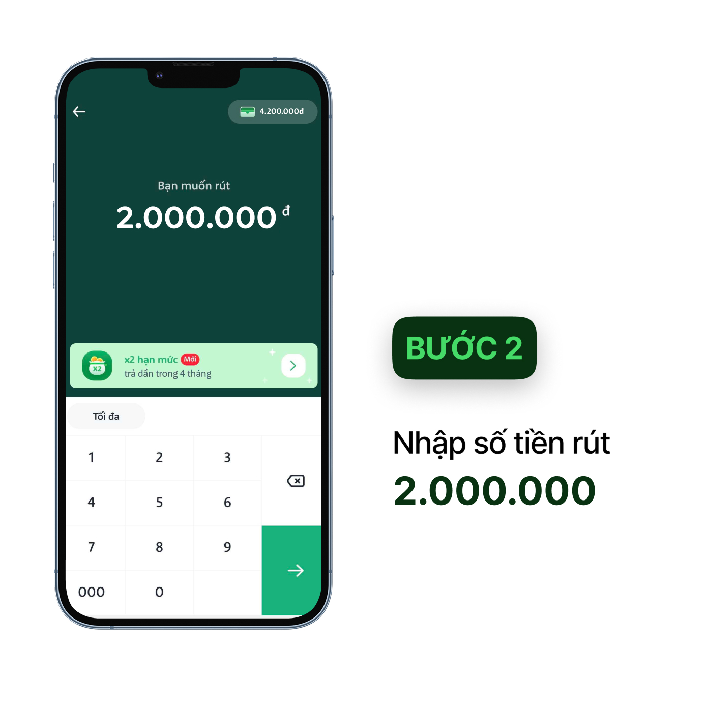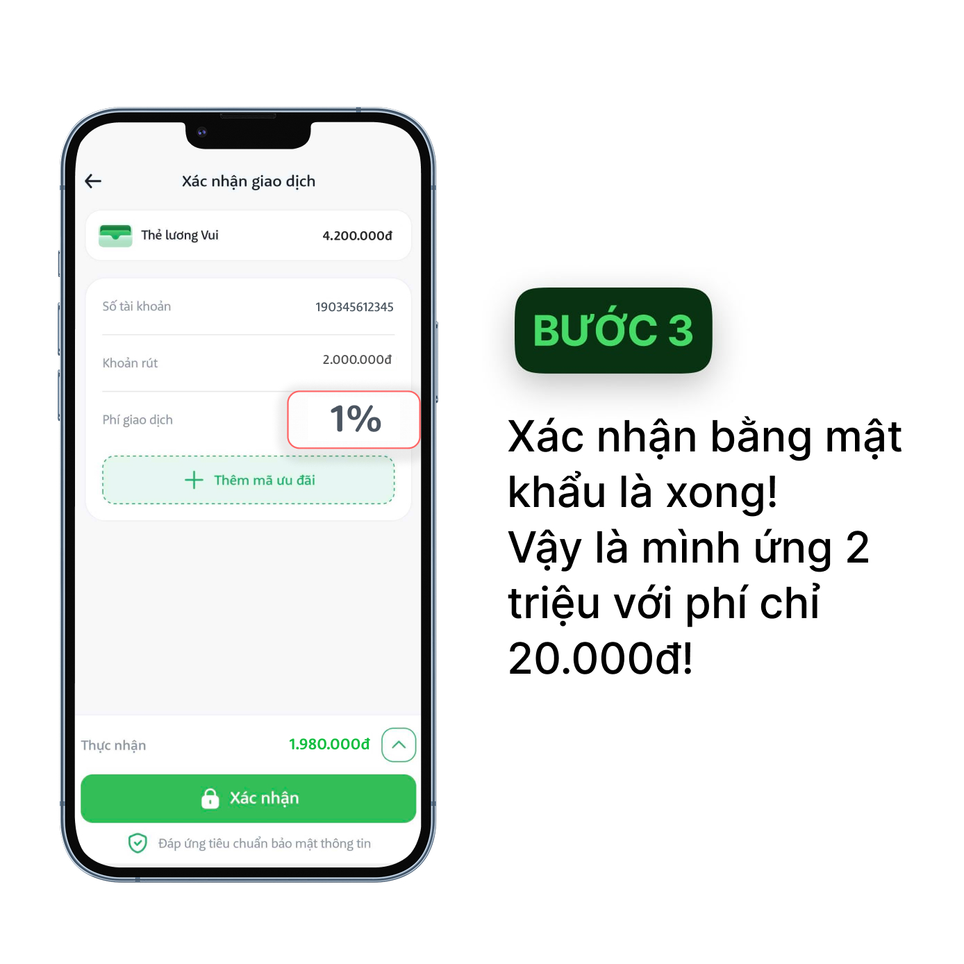 Mình chọn số tiền ứng 2.000.000đ thì giao dịch đó của mình chỉ tính phí 1%.