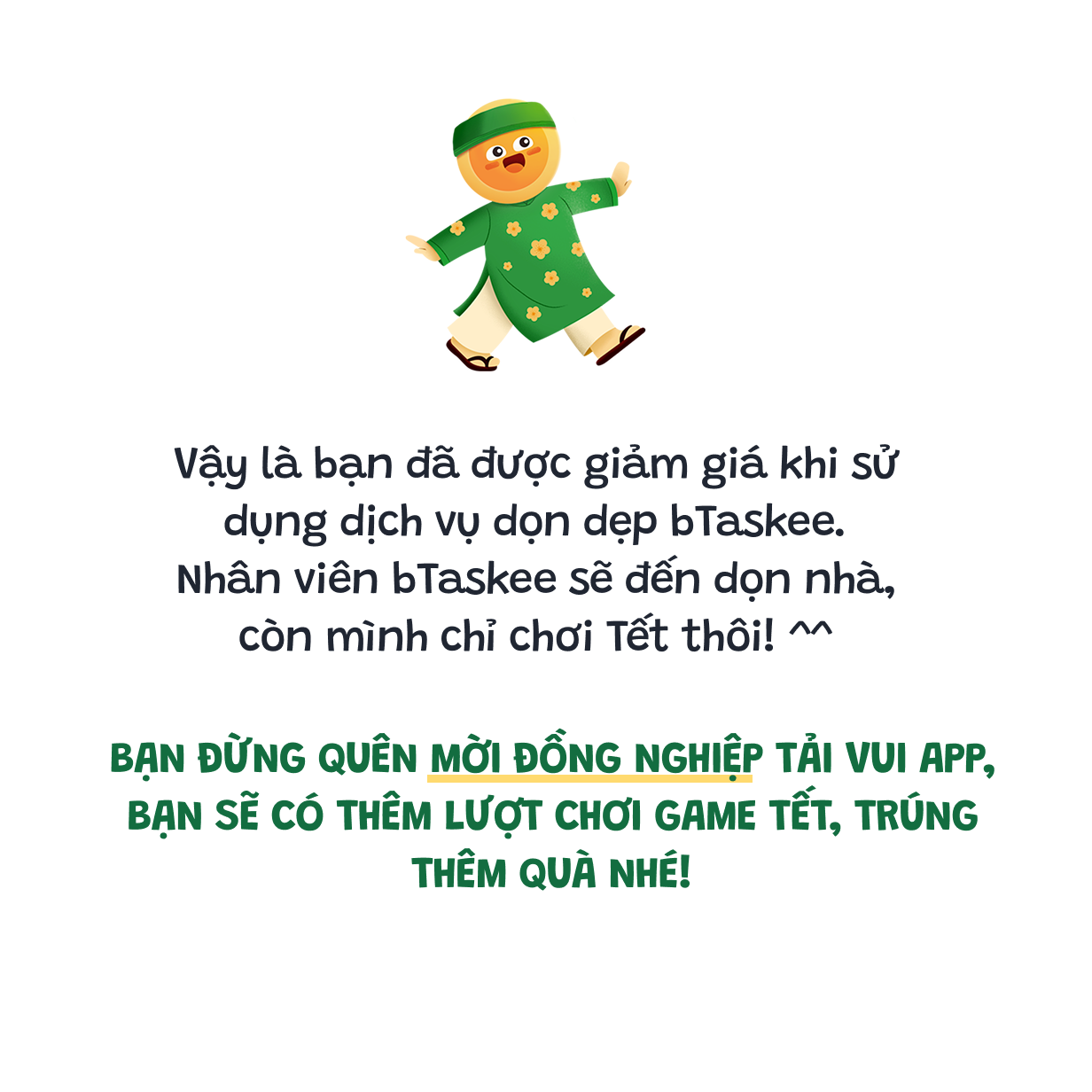 bTaskee là ứng dụng giúp bạn thuê giúp việc dọn dẹp theo giờ. Tết này, khi chơi game Vui, bạn có thể nhận được ưu đãi từ bTaskee: